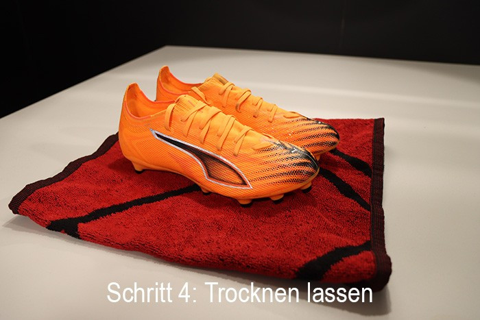 Verwenden Sie zum Reinigen Ihrer Fußballschuhe niemals Reinigungsmittel. Dadurch werden die Nähte der Fußballschuhe zerstört.